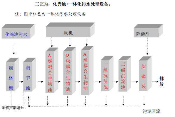 生物为:化粪池+ •体化污水处理设备。