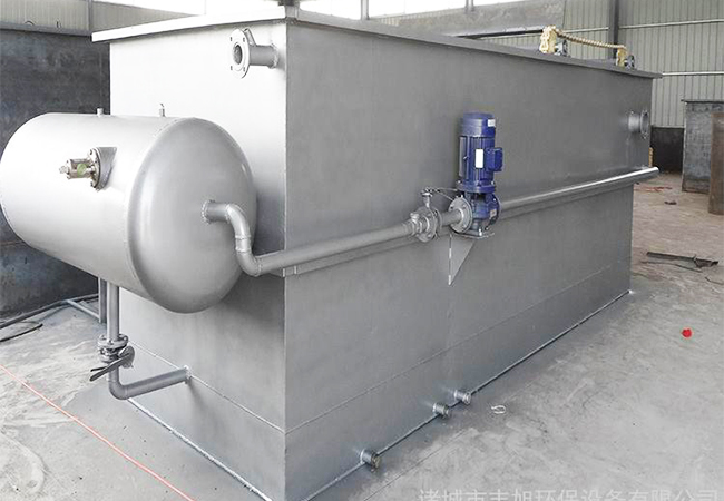 一体化气浮设备主要是将气池池、溶气罐、溶气水泵、投药设备和空压机或射流器有机地组合一体。这样的集成,占地面积小,操作方便,且不需做基础,也可缩短安装时间,减少工作量。一体化气浮设备主要起固液分离作用(同时可以降低COD、BOD、色度等)。一元化气浮设备主要利用溶气系统产生的溶气水中的微气泡,与水中的悬浮物絮体粘合在一起,悬浮物随微气泡一起上升至水面,形成浮渣,使水中的悬浮絮体得到去除,该设备用户单位只要接上调节好PH值的污水到进出等管口,一经调试好后,正常运行,不需专人管理,运行基本达到自动化无人管理状态。它应用于电镀、印染、食品、屠宰、炼油、废水的油脂、化工、造纸废水及生活饮用水方面。